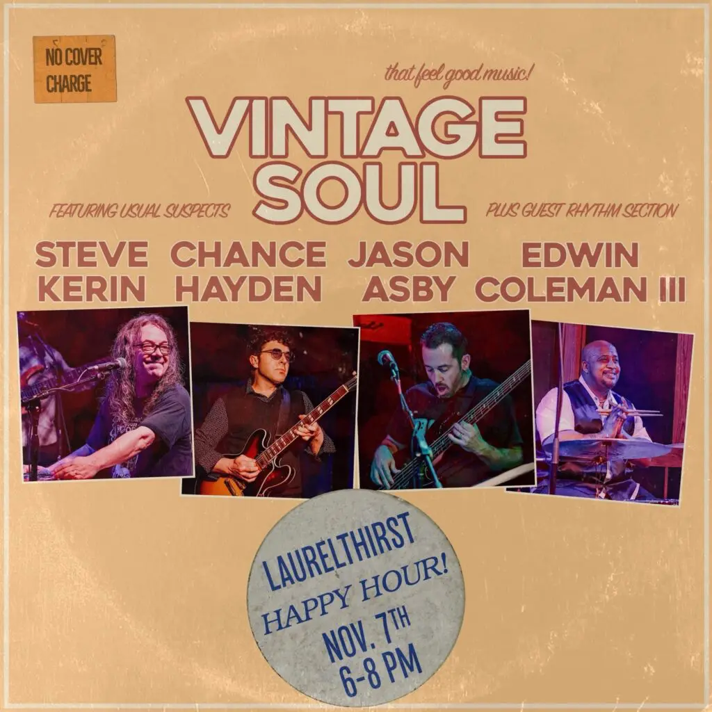 07nov6:00 pm8:00 pmVintage SoulFRIDAY HH | FREE | 6-8PM