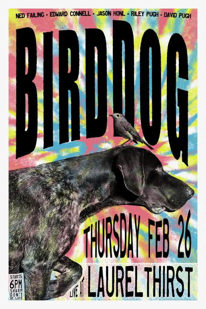 BirdDog brings together David Pugh (Jackstraw), his son Riley, Jason Honl (Woodbrain), and Edward Connell (Russell St. Jam). Mixing four decades of originals with choice covers, they channel the spirit of The Band, The Grateful Dead, and The Meters. What began as family jam sessions in a tiny house has grown into a band built on community, groove, and a love of sharing music