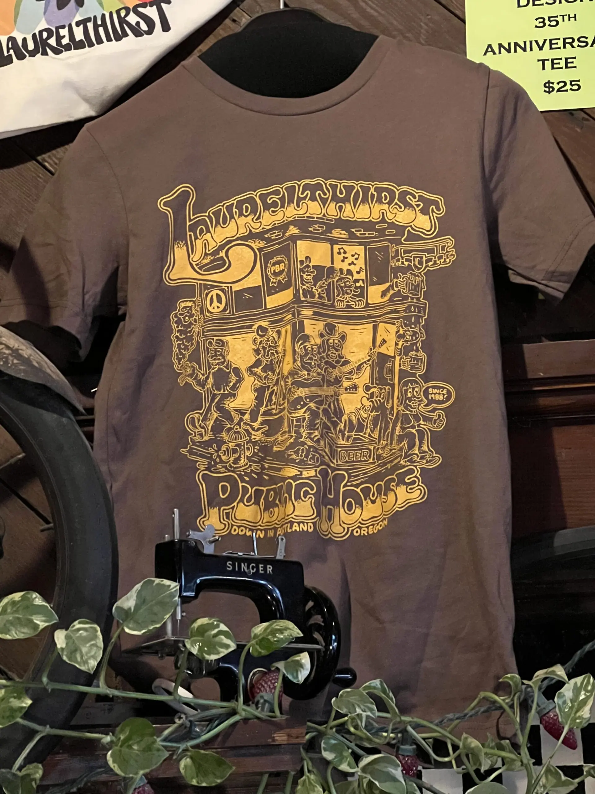 A special Laurelthirst shirt designed by artist TW Rushing, just in time for the Pub’s 35th Anniversary! Visit the artist: https://www.taylorwrushing.com